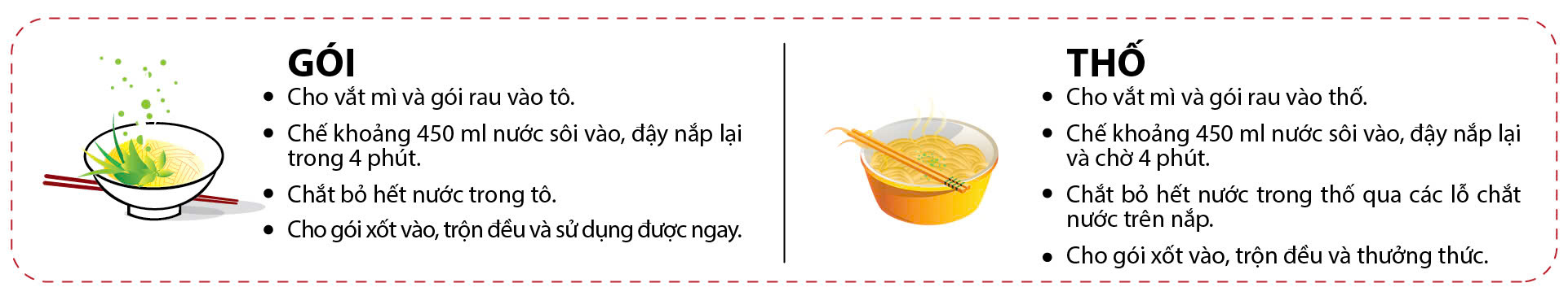 2. Gói xốt: Nước, dầu cọ, cà chua (130 g/kg), đường, hành, chất làm dày (422, 1442, 415), tỏi, hỗn hợp bột (bột hành, bột tỏi, bột ớt, bột tiêu), chất điều vị (621, 631, 627, 364(ii)), tỏi, muối, cốt nước tương, nước mắm, dịch chiết bò tươi (14 g/kg), hương liệu tổng hợp dùng trong thực phẩm, chiết xuất nấm men, bột gia vị, bột cà chua, chất điều chỉnh độ acid (330, 296), bột sữa dừa, chất bảo quản (202, 211), chất tạo màu (màu tự nhiên (160c(i)), màu tổng hợp (150d)), bột tôm khô chiết xuất, chất tạo ngọt tổng hợp (950), chất chống oxy hóa (319).