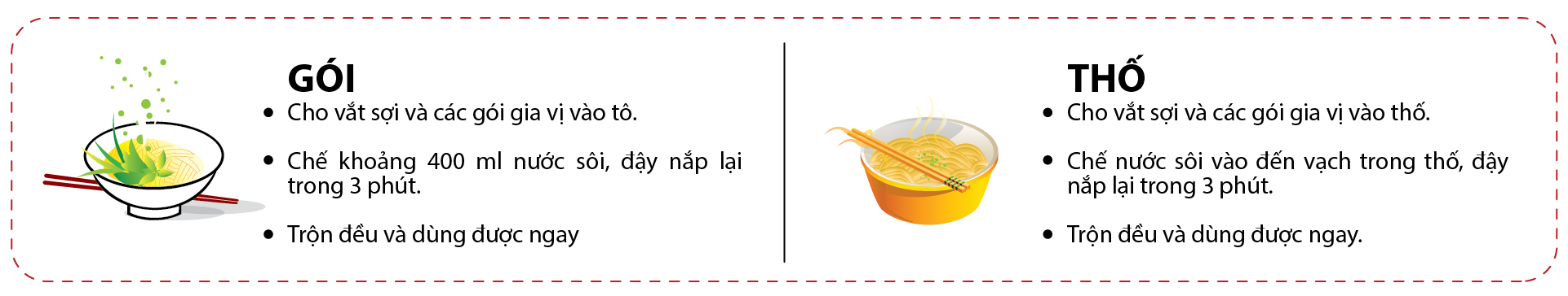 2. Gói xốt: Nước, muối, dầu cọ, chất điều vị (621, 631, 627, 364(ii)), đường, hành, hỗn hợp bột (bột tiêu, bột gừng, bột tỏi, bột ớt, bột hồi, bột thảo quả, bột quế, bột nhục đậu khấu), mỡ động vật, tỏi, gừng, cốt phở bò chiết xuất (16,5 g/kg), sả, hương liệu tổng hợp dùng cho thực phẩm (hương bò, hương thịt, hương mùi tàu, hương húng quế), bột gia vị, chiết xuất nấm men, chất bảo quản (202, 211), chất làm dày (415), chất tạo màu (màu tổng hợp (150d), màu tự nhiên (160c(i), 100(i))), chất tạo ngọt tổng hợp (950), nước cốt xương hầm (0,75 g/kg), chất điều chỉnh độ acid (330), chất chống oxy hóa (319).
